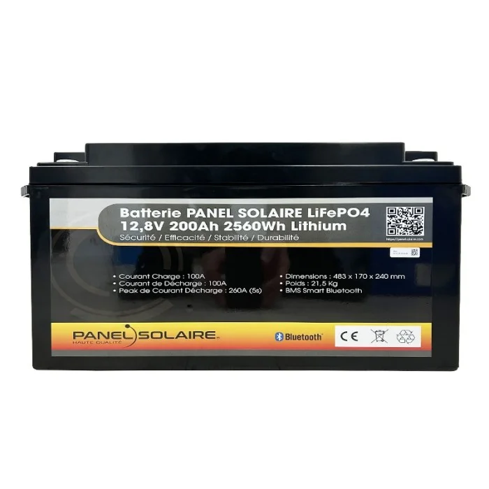 Batterie PANEL SOLAIRE Lithium LiFeP04 Smart 12,8V 200Ah BMS (avec chauffage)