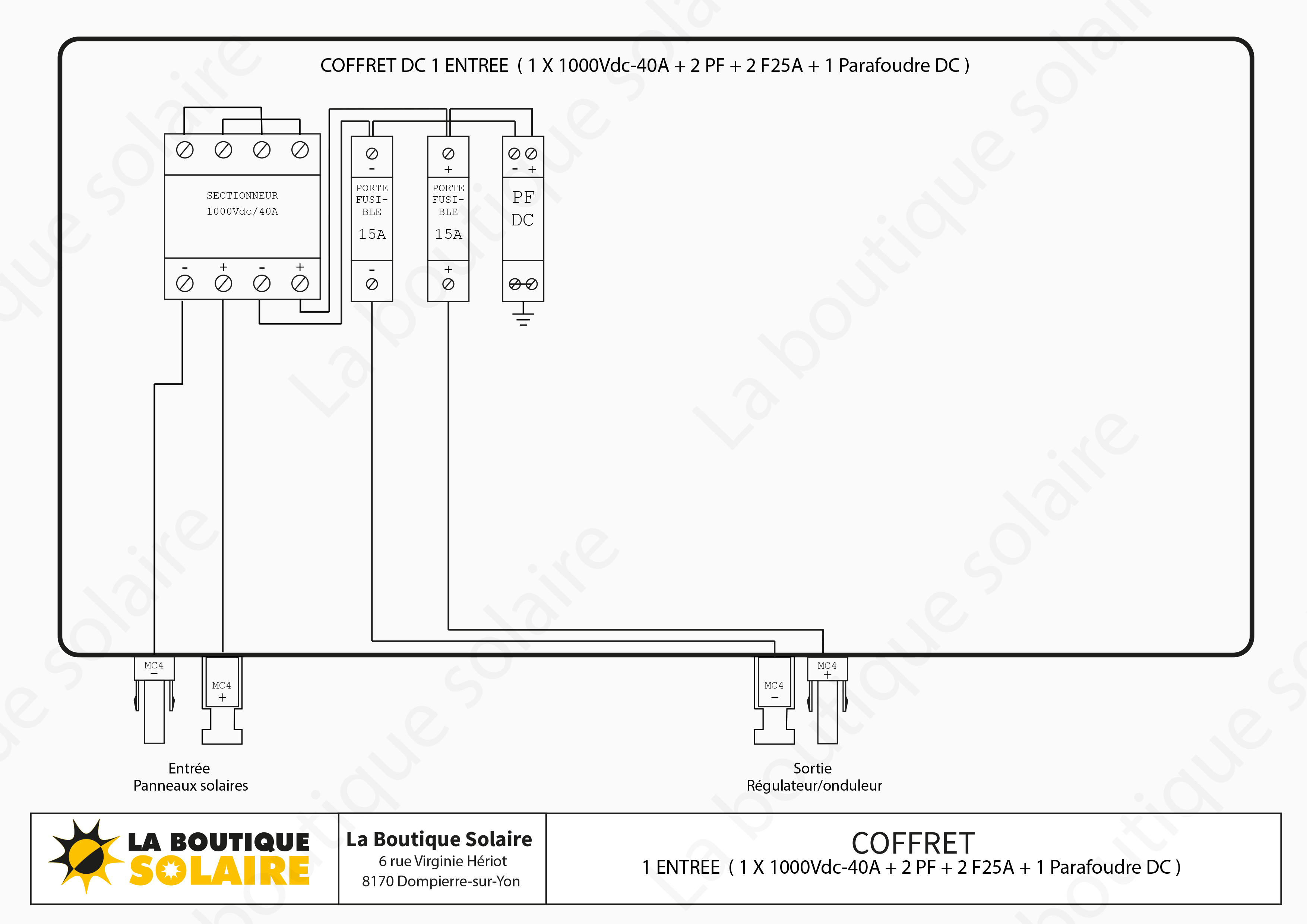 " Le coffret de protection DC pré-câblé permet l'installation de toutes les protections électriques de façon "plug'play" (brancher et utiliser) "