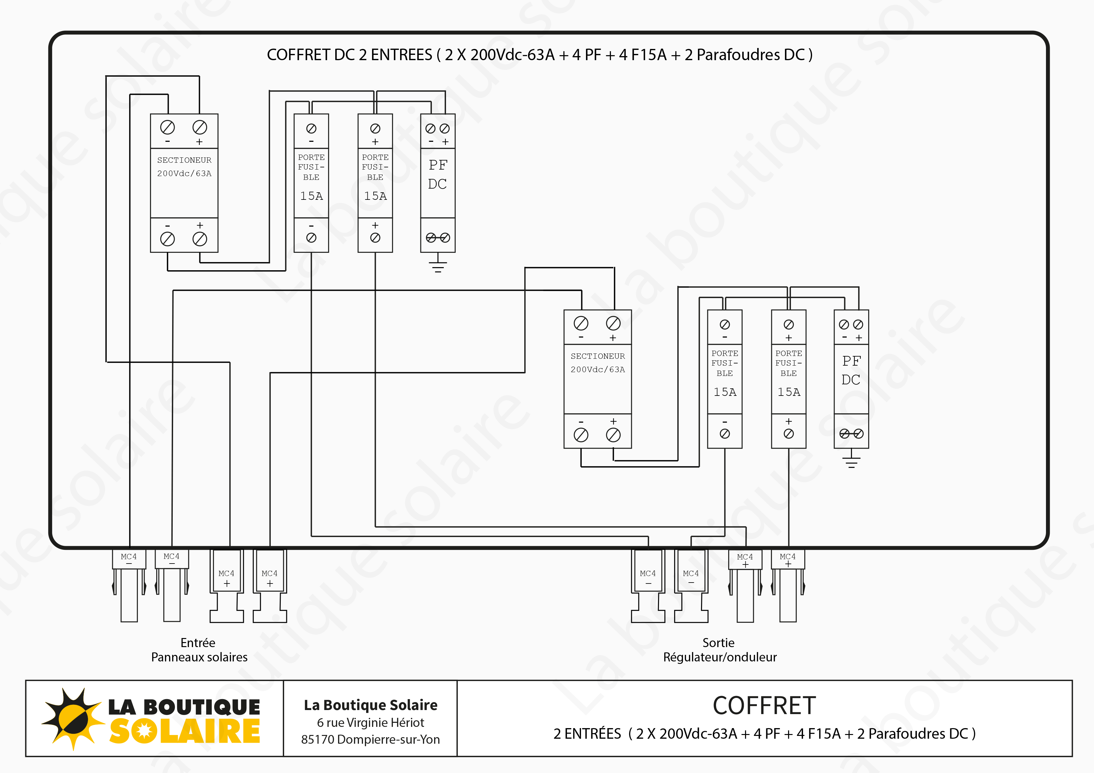" Le coffret de protection DC pré-câblé permet l'installation de toutes les protections électriques de façon "plug'play" (brancher et utiliser) "
