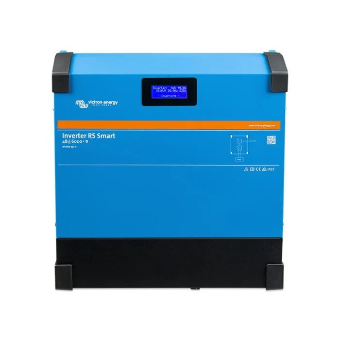 Le RS Smart est un convertisseur puissant de 48 VCC, 6 kVA et 230 VCA. Il présente une conception moderne et une technologie de fréquence élevée.