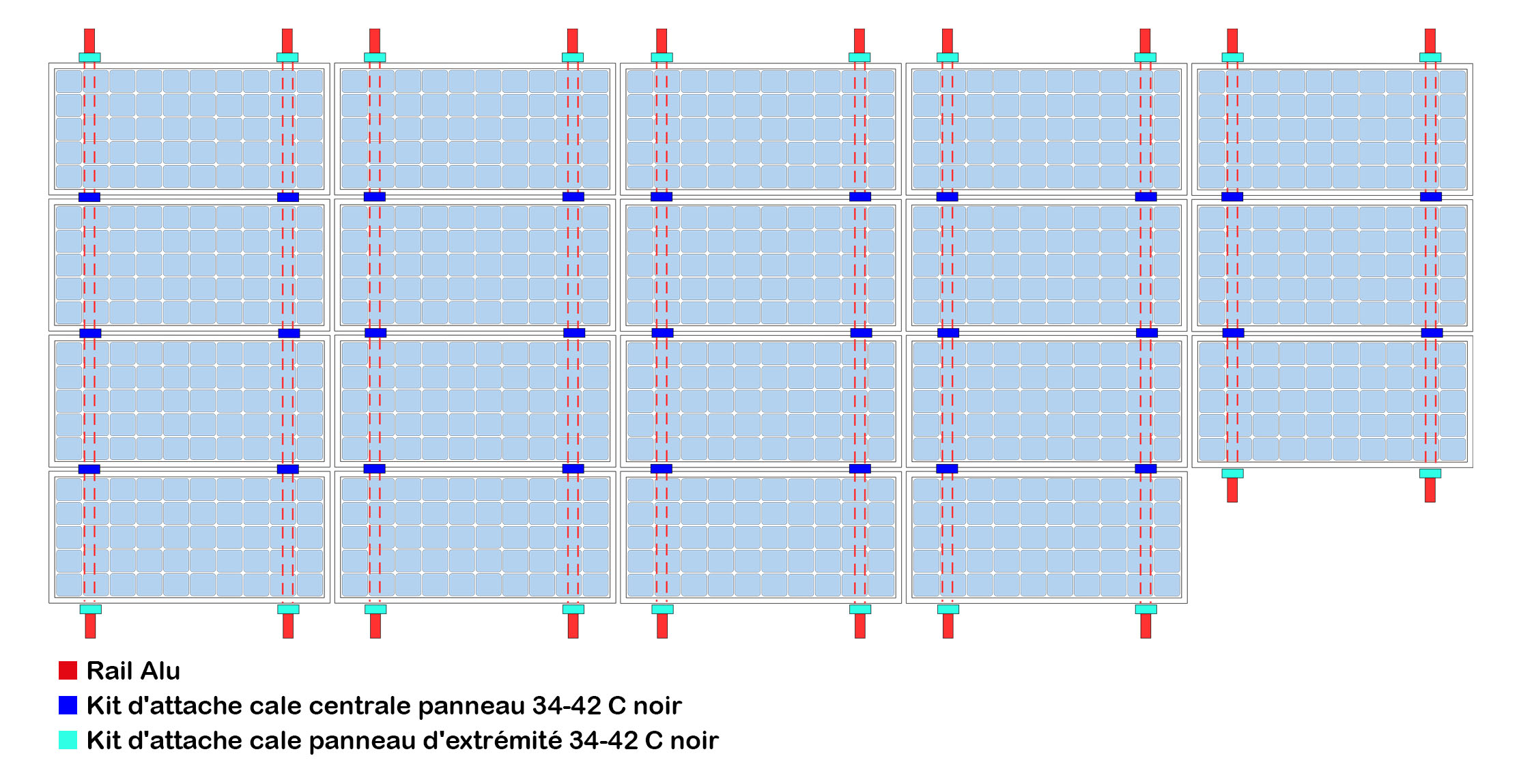 Kit de fixation NOIR ou GRIS pour 7 panneaux solaires sur Toiture bac acier, toit en tôle - PAYSAGE