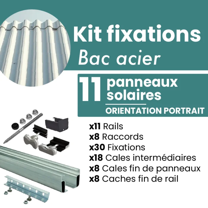 Ce kit a spécialement été conçu pour fixer jusqu'à 11 panneaux solaires sur une toiture bac acier ou en tôle. Il permettra une attache sûre et solide de vos panneaux sur votre toit.