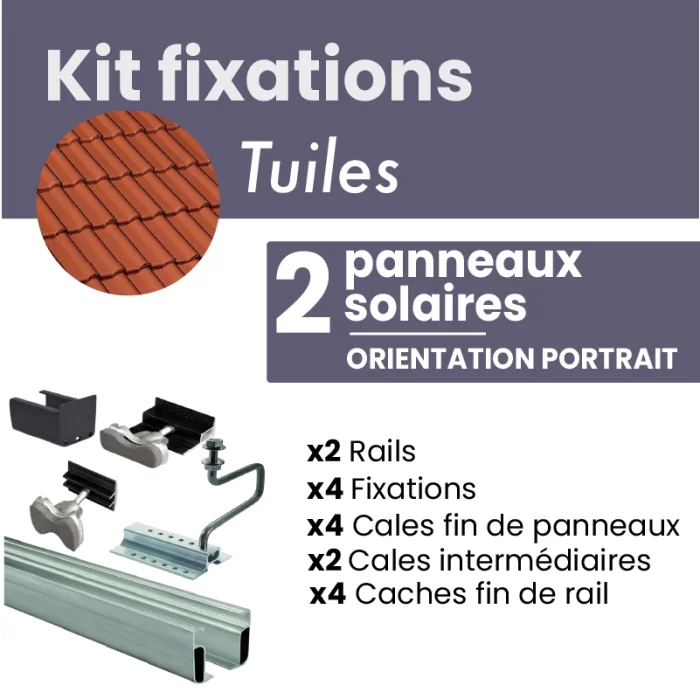 Ce kit a spécialement été conçu pour fixer jusqu'à 2 panneaux solaires sur des tuiles mécaniques. Il permettra une attache sûre et solide de vos panneaux sur votre toit.