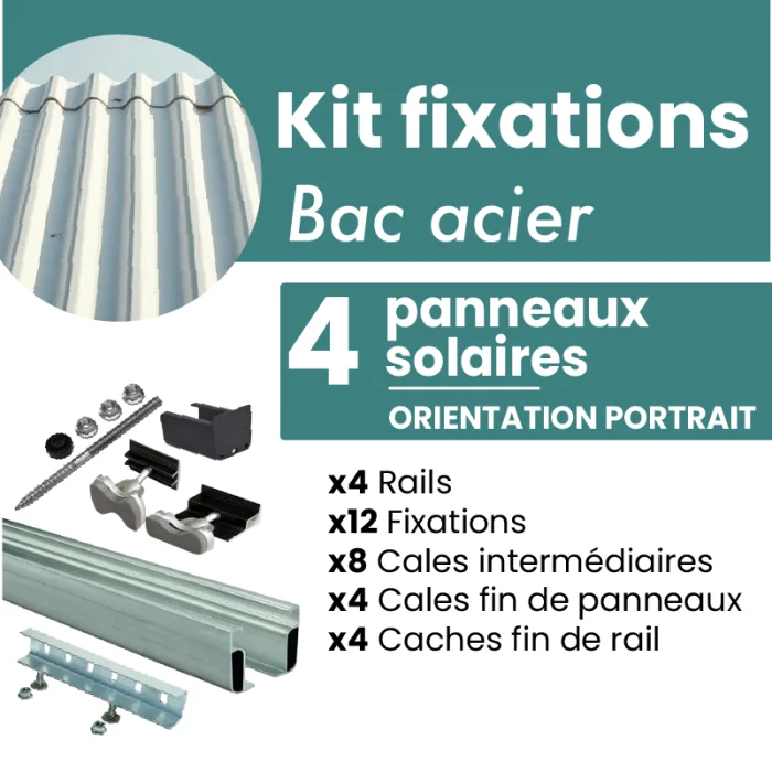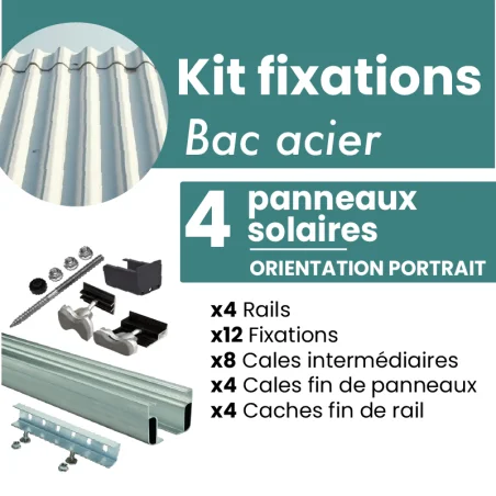 Ce kit a spécialement été conçu pour fixer jusqu'à 4 panneaux solaires sur une toiture bac acier ou en tôle. Il permettra une attache sûre et solide de vos panneaux sur votre toit.