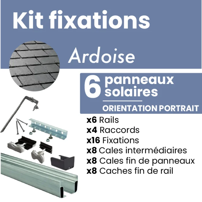 Kit de fixation pour 6 panneaux solaires sur Toiture ardoise - PORTRAIT