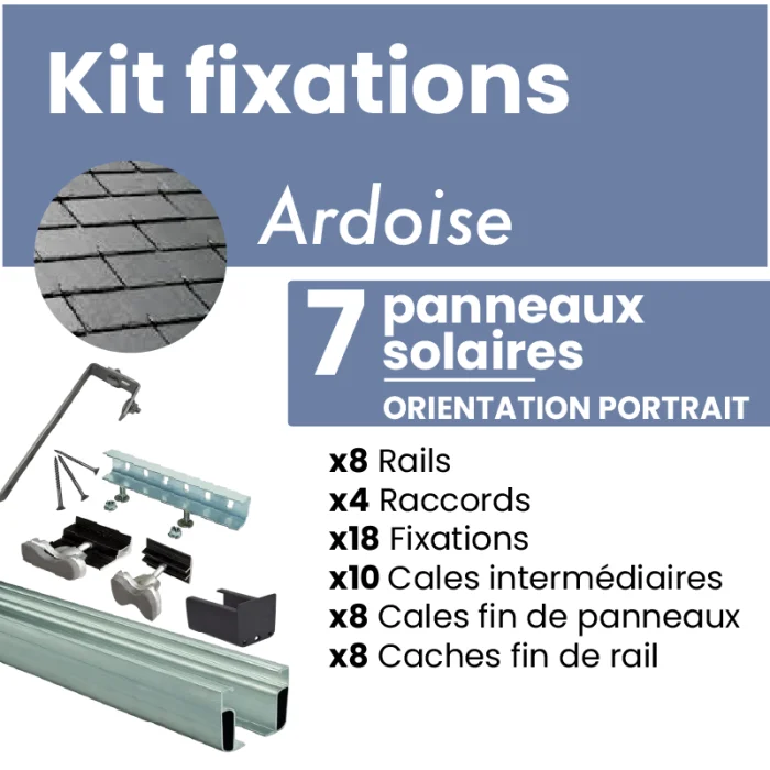 Kit de fixation pour 7 panneaux solaires sur Toiture ardoise - PORTRAIT