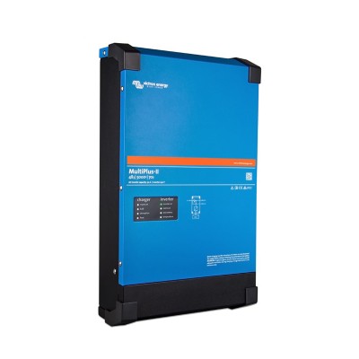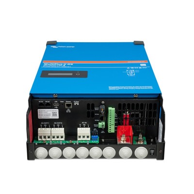 Convertisseur/chargeur équipé d'un dispositif d'interconnexion au réseau, le MultiPlus-II GX peut communiquer avec un chargeur solaire, des batteries, et d'autres appareils, afin de contrôler les différents types d'installations électriques : qu'elles soient raccordées au réseau, hors réseau ou à distance.
