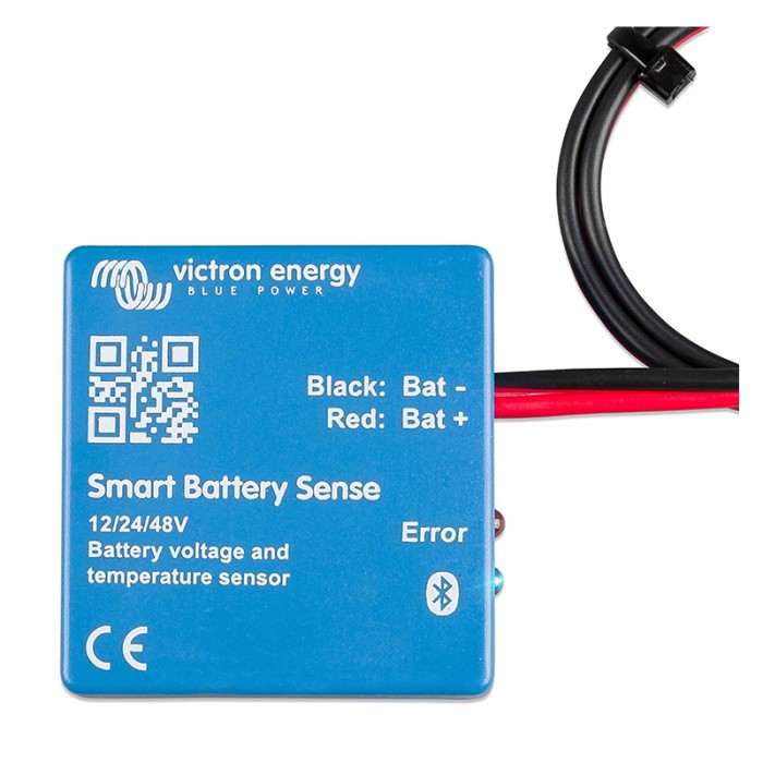 Si vous n'êtes pas équipé de la Smart Battery Sensor, la tension batterie est relevée par le régulateur de charge MPPT Victron Energy, donc des erreurs de perte de tension due à la résistance des câbles peuvent survenir. Grâce à cette sonde la tension est relevé directement aux bornes de vos batteries de manière très précise ce qui permet donc de garantir une tension de charge correcte.