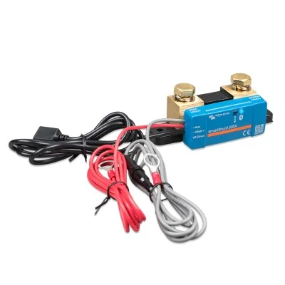 Le SmartShunt représente une bonne alternative au contrôleur de batterie BMV, en particulier pour des systèmes dans lesquels on souhaite superviser une batterie, mais avec moins de câble et de désordre. Équipé d'un Bluetooth, d'un port VE.Direct et d'une connexion, il peut être utilisé pour surveiller une deuxième batterie, un point médian ou une sonde de température.