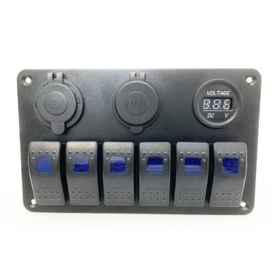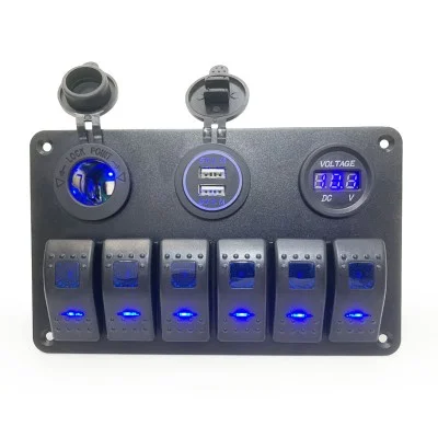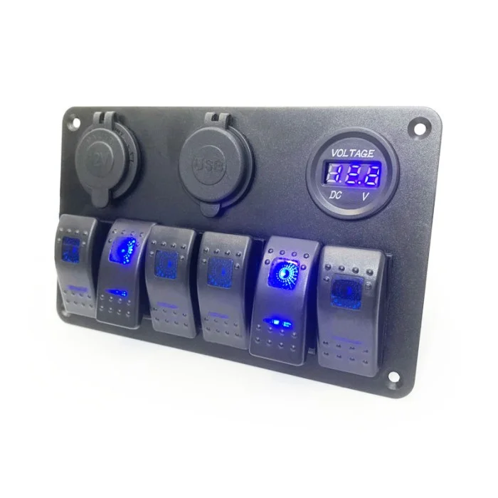 Tableau 12V PANEL SOLAIRE (6 interrupteurs + USB 2 x 2.1A + allume-cigare 12V + Voltmètre digital)