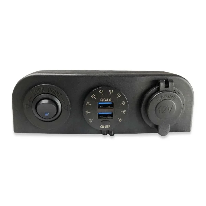 Tableau 12V PANEL SOLAIRE ( Interrupteur Rond ON/OFF avec Led Bleu  + Double USB 3.0A avec voltmètre à led + allume cigare 12V )