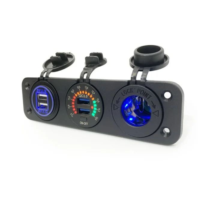 Le tableau dispose d'un voltmètre à leds intégré permettant de contrôler et surveiller la tension de votre véhicule en temps réel. Deux ports USB supplémentaires vous permettront de brancher deux autres appareils numériques dans la limite de 3,0A.