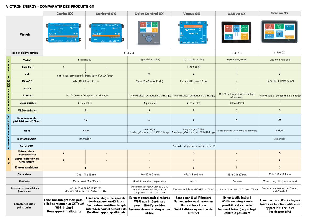 Les produits de la gamme GX Victron Energy sont des appareils spécialement conçus pour la supervision, le contrôle et la gestion de vos systèmes de stockage d'énergie.