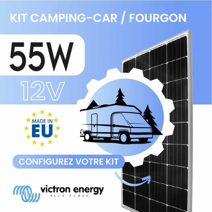 Conçu pour les heureux propriétaires de camping-car qui souhaitent reprendre la main sur leur installation électrique, ce kit solaire 12V 55W s'articule autour d'un panneau monocristallin Victron Energy 55W, une référence reconnue pour sa fiabilité et son rendement en conditions réelles de voyage. Robuste, compact et adapté à une pose sur toit de véhicule, ce panneau constitue le cœur fixe de votre installation — tout le reste se configure selon vos besoins.