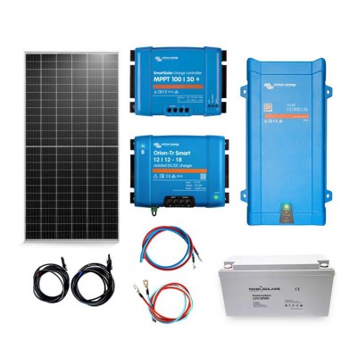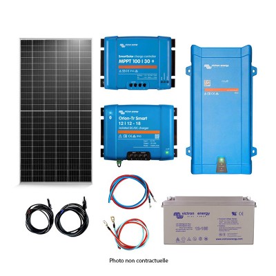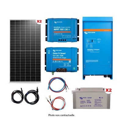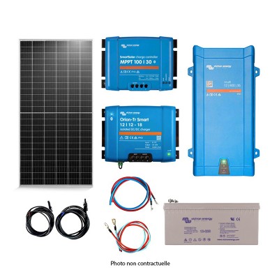 Tous nos kits sans production solaire, composés d'une batterie AGM ou lithium et d'un chargeur Orion ou Cyrix.